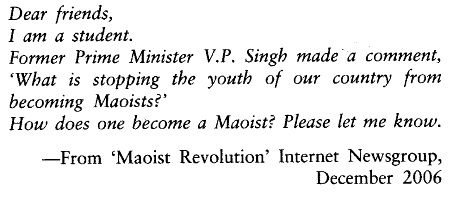 சரி. ஏதுதான் நம்தேசத்து இளைஞர்களை, நக்ஸலைட்டுகள் ஆகவிடமாட்டேன் என்கிறது? (அல்லது எப்படியாவது எல்லா இந்திய இளைஞர்களும், நக்ஸலைட்டுகள் ஆகிவிடக் கூடாதா?? ஏன் தான் இது நடக்கமாட்டேன் என்கிறது?)