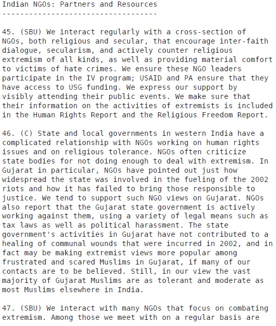 மேற்கண்டவை இடம் பெற்றிருக்கும் ஆவணமான – 2005 அக்டோபர் 5, 05:52 (புதன்கிழமை அன்று) அமெரிக்காவின் டெல்லி தூதரகத்திலிருந்து அவர்களுடைய மேலதிகாரிகளுக்கும் அனுப்பப்பட்டஅனுப்பப் பட்ட ரகசியச் செய்தியைப் படித்து இன்புறவும்