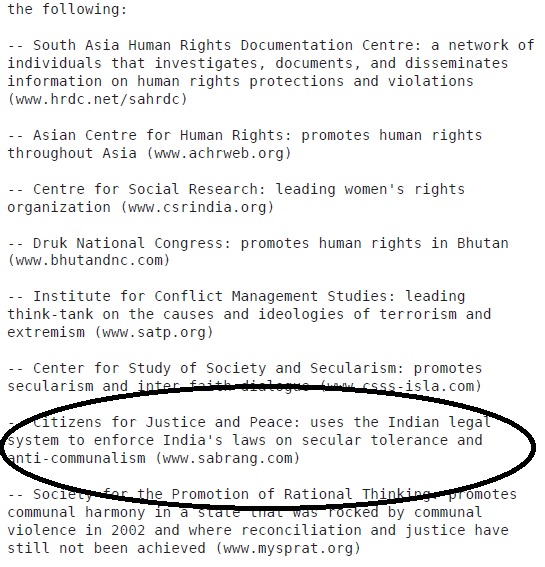 சுழித்துக் காட்டப் பட்டுள்ள ஸிஜேபி, தீஸ்தா அம்மையாருடையது; ஸப்ரங், அவர் கணவருடையது; பண/பிணக் கொழிப்புக்குக் கேட்பானேன்!