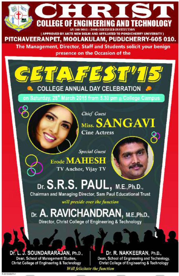 மொதல்ல இந்த பொறியியல் – தொழில் நுட்ப (என்ன நுட்ப கண்றாவியோ) கல்லூரிகள் தொடங்குமுன், அவர்கள் கல்லூரி விழாவுக்கு சினிமாக்காரர்களை முதன்மை விருந்தினராக அழைக்கக்கூடாது என்பதை விதியாக வைக்கவேண்டும்.