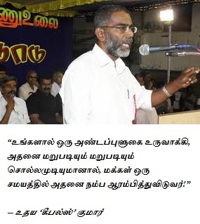 எப்படி வெட்கம்கெட்டுப் போய், கீழ்த்தரமாகப் பொய் சொல்கிறார்கள், இந்த உதயகுமார்கள், பேரண்டப் புளுகர்கள்