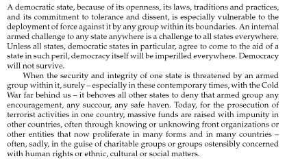 செப்டெம்பர் 18, 2000 அன்று, ஐக்கிய நாடுகள் சபையில், கதிர்காமர் அவர்கள் ஆற்றிய உரையிலிருந்து ஒரு பகுதி...