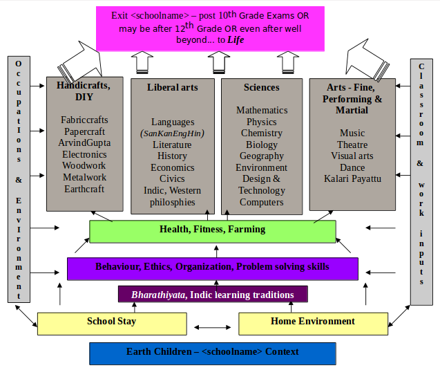 The following diagram and a few paragraphs are a part of what we have been doing and am sharing the stuff, hoping that it would be useful to at least 6 of you phenomenal brethren, grappling with the beastess called education in the veritable battlefields of the really impoverished, alcohol soaked, maoist ravaged Indian rural areas, and you know who you are! :-) You and us shall ‘overcome,’ yes!