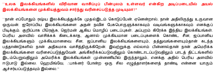 4 Responses to “நம்முடைய செல்லங்களான அரைகுறைத் தமிழ் எழுத்தாளர்களின் – பொதுவாகவே மோசமான, சராசரித்தனமான நிலைக்குக் காரணம்…”