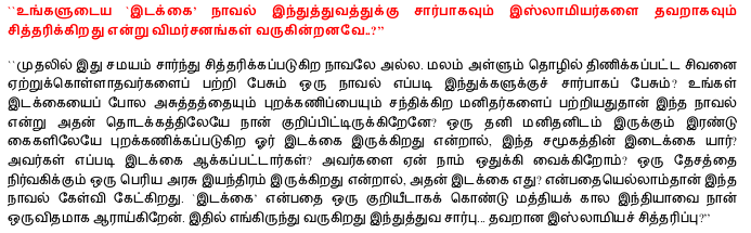 screenshot-from-2016-11-12-030622தமிழில் எழுதுவதாக பாவலா செய்துகொண்டிருக்கும் இந்த பேட்டியாள அரைகுறைகளின் சித்தரிப்பு (இது சித்திரிப்பு என்றுதானே இருந்திருக்கவேண்டும் – சித்திரம்-பிக்சர்-பிக்சரைஸேஷன்) அபத்தங்களை விட்டுவிட்டாலும் – இப்படியா ஒரு அயோக்கிய சகிப்பின்மைக் கேள்வி கேட்பார்கள். நானாக இருந்திருந்தால்  இவர்களைத் துரத்தியிருப்பேன் – ஆனால் பாவம் எஸ்ரா, இந்த அரைகுறைகளுக்குப் பொறுமையாக பதில் வேறு அளித்திருக்கிறார்.