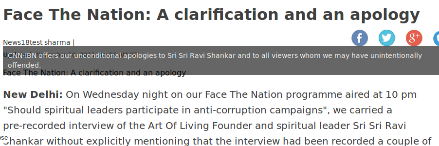 ஆனால் – அந்த நிகழ்ச்சியில் ஸ்ரீஸ்ரீ நேரடி ஓளிபரப்பில் பங்கு பெறவேயில்லை. ஆனால் – அவர் பேசியிருந்த பழைய வீடியோ துணுக்குகளை மிகச் சாமர்த்தியமாகவும் அயோக்கியத்தனமாகவும் சேர்த்துக் கோர்த்து, கோஷ்டமார் கேள்விக் கணைகளைத் தாங்கமுடியாமல் ஸ்ரீஸ்ரீ ஏதோ உளறுவதைப் போலத் திரித்து ஒரு அற்பத்தனத்தைச் செய்தார். ஆனால் வசமாக மாட்டிக்கொண்டார்.