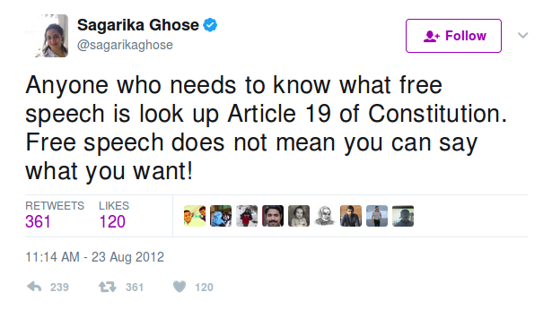 அமோகப் பொய்கள் பல சொல்லியே, பப்பரப்பா கோஷ்டங்கள் போட்டே மக்களின் பேராதரவு பெற்றவர் இந்த ஸாகரிகா கோஷ் அம்மணியார்.  இந்தச் சோக எழவை நான் சொல்லித்தான் நீங்கள் தெரிந்துகொள்ளவேண்டும் என்கிற அவசியம் இல்லை என்பது எனக்குத் தெரியும். ஏனெனில், இந்திய ஊடக அரசியலின் பேடித்தனங்களை ஆழ்ந்து கவனித்து வருபவர்களுக்கு இந்த அம்மணியுடன் சேர்த்து ராஜ்தீப் ஸர்தேஸாய் (இவர் அம்மணியின் கணவர்), பர்க்கா தத் போன்றவர்களையும் அவர்களின் வேடங்களையும் நன்றாகவே தெரிந்திருக்கும்.