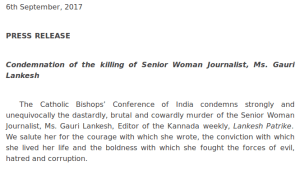 (Sadly, I don’t remember this catholic organization coming out with anything like this, when a normal, bold, courageous person  gets murdered – like our venerable Shanmugam Manjunath)