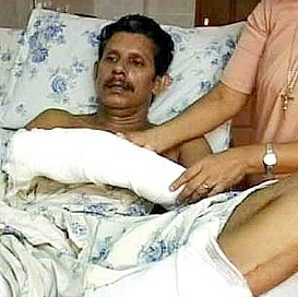 இந்த அயோக்கிய விஷயம் நமக்கெல்லாம் மறந்திருக்கலாம். வலது மணிக்கட்டுக்குக் கீழே இவர் கையைச் சுத்தமாக வெட்டிவிட்டார்கள், இந்த வெறியர்கள்!