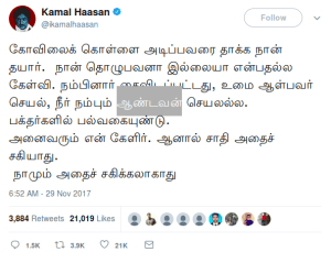 …இருந்தாலும், அவர் ட்விட்டரில் ஆண்டவர் மலை பற்றியது போல என்னவோ தமிழ் மாதிரி ஒரு விசித்திர மொழியில் எழுதிச் சுற்றியட்ச்சிவுட்டதுதான்…