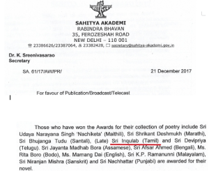 தமிழ் மொழியைக் கேவலப்படுத்துவது எப்படி? (அல்லது ‘இன்குலாப்’ அவர்களுக்கு ஸாஹித்ய அகடெமி விருதாமே!)