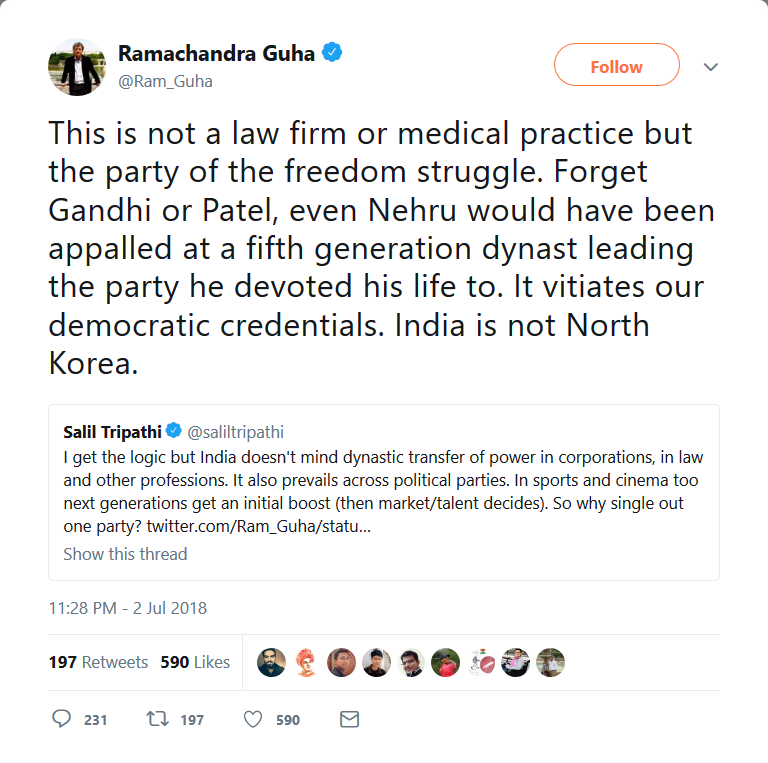 This is what illustrious Ram Guha tweeted on 2nd July 2018.