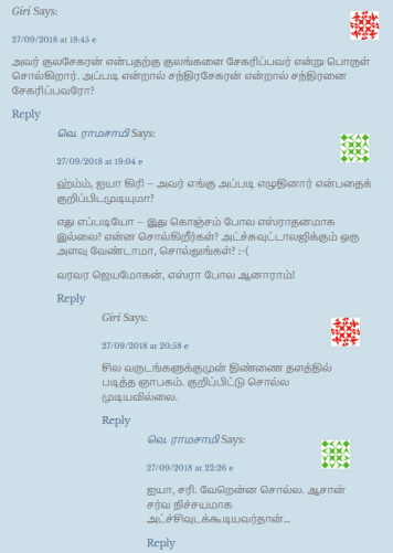 சரி. கீழே – ‘கிரி’ எனத் தன்னை அழைத்துக்கொள்ளும் ஒரு அன்பருடன் நடந்த உரையாடலின் பகுதி: