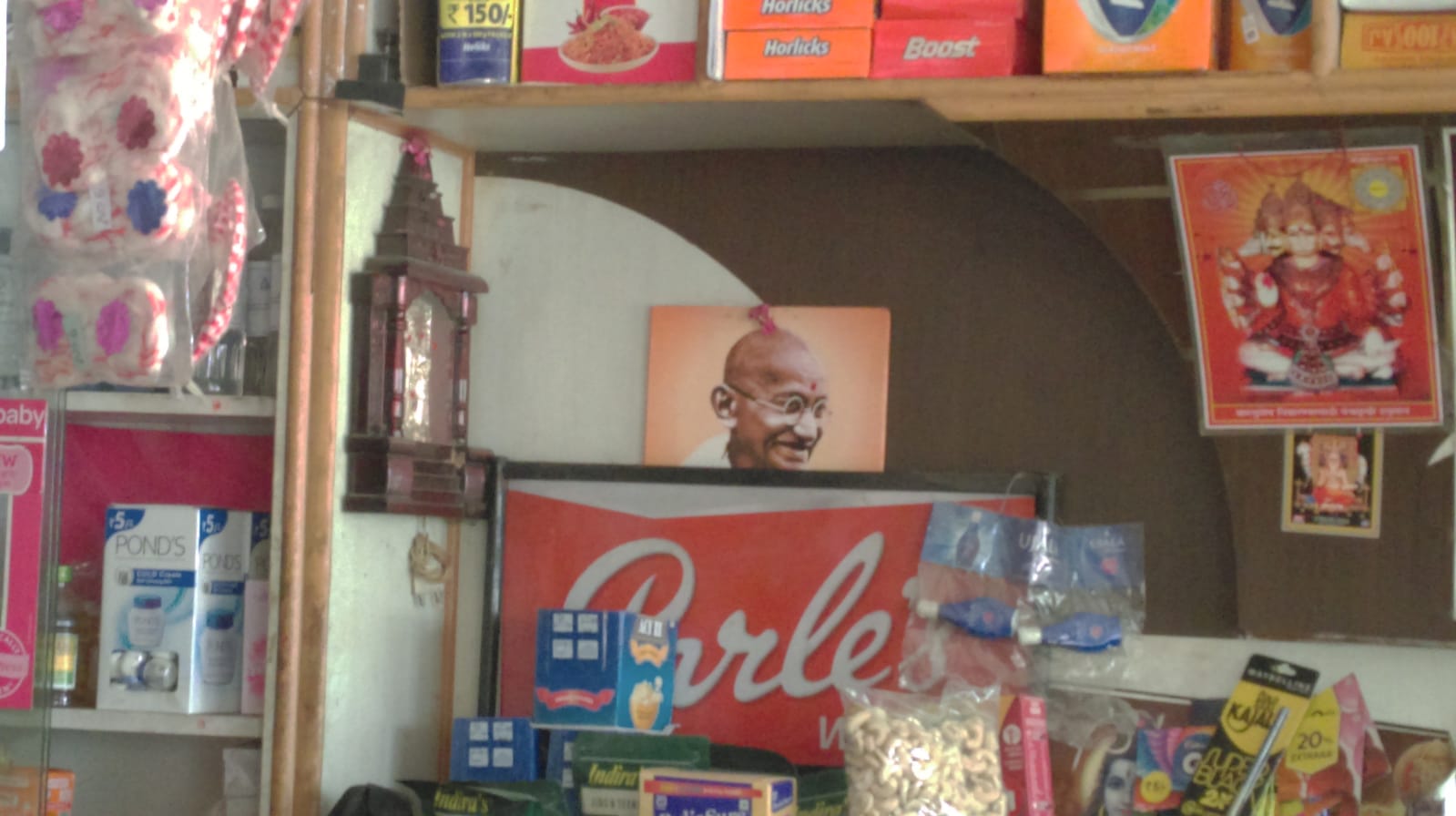 அந்தக் கடையில், காந்தி சிரித்துக்கொண்டிருந்தார்.
