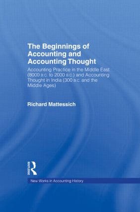 The Beginnings of Accounting and Accounting Thought – Accounting Practice in the Middle East (8000 B.C to 2000 B.C.) and Accounting Thought in India (300 B.C. and the Middle Ages), 1st Edition (https://books.google.co.in/books/about/The_Beginnings_of_Accounting_and_Account.html?id=8QqRVeUFA64C&redir_esc=y + https://www.routledge.com/The-Beginnings-of-Accounting-and-Accounting-Thought-Accounting-Practice/Mattessich/p/book/9780815334453)
