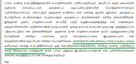 7. ‘பாலா’ எனும் ஜெயமோக வாசக அன்பர் ஒருவர், ஜெயமோகனுக்கு எழுதிய கடிதம் ஒன்றில் குறிப்பிட்டிருக்கிறார்.