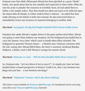 And this was what was written by one Sanjana Ray (based on a talk given by that another two-bit twistorian, Ram Puniyani) on 29th November, 2017. (screenshot below – this is from the thequint.in, a web tabloid)