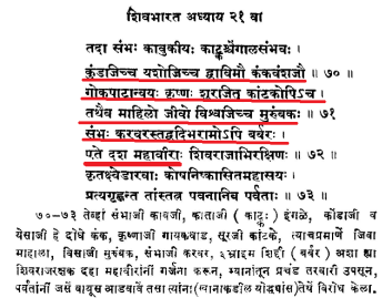 (‘yathe dhasha mahaaveerah‘ = these are the ten great warriors – source page of Sri Shivbharat, with Marathi commentary by venerable SM Divekar – available off archive.org)
