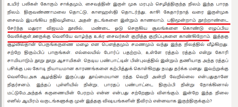 அதுமட்டுமல்ல – சைவர்கள் (போன்றவர்கள்) இப்படியும் உயிர்ப்பலி கேட்டும் ஆகாத்தியம் செய்ததற்கு மாறாக ‘கருணை மழை’ மார்க்கங்கள் எப்படி இயங்கின என்றும் மேதாவிச் சான்றோர் தனமாக அட்ச்சிவுடுகிறார்.