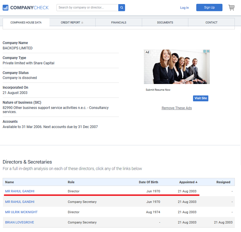 2009 தேர்தல் விண்ணப்பத்தில் இந்த பேக்ஆப் நிறுவனத்தைப் பற்றி ராஹுல் குறிப்பிட ‘மறந்து’ விட்டார். பின்னர் இதுகுறித்து சுப்ரமணியம் சுவாமி போன்றவர்கள் குடைய ஆரம்பிக்கவே – அவர் பயந்துபோய் மே 2010ல் அந்த நிறுவனத்தின் ‘டைரக்டர்’ பொறுப்பினை ராஜினாமா செய்தார். இருந்தாலும் அந்த நிறுவனத்தில் 82% போல அவர் ‘பங்கு’ இருக்கிறது.