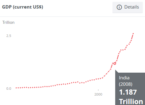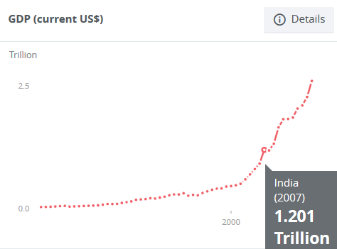 சரி. 2007லும் மன்மோஹன் சிங்கனார் ஆட்சிதான் – அவ்வருடம், நம் ஜிஎன்பி, 1.201 ட்ரில்லியன் அளவில் இருந்தது.