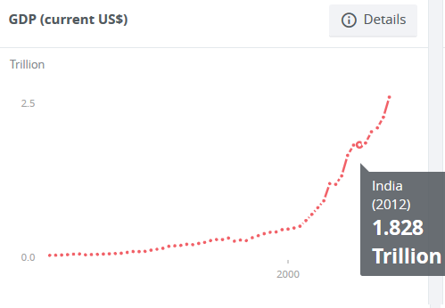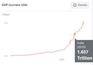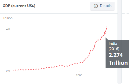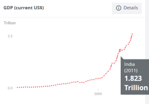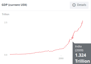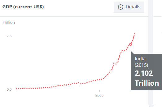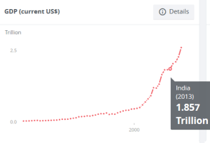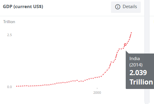 2014ல் ஜிஎன்பி இருந்த 2.039 ட்ரில்லியனில் (142.73 லட்சம் கோடி ரூபாய்)  இருந்தது 2017 வாக்கில் 2.601 ட்ரில்லியனை (182.07 லட்சம் கோடி ரூபாய்) எட்டி விட்டது. எல்லாவற்றுக்கும் தற்போதைய டாலர்-ரூபாய் மாற்ற எண்ணிக்கையான ~70 ரூபாயை, சமச்சீர்முறையாக உபயோகித்திருக்கிறேன்.