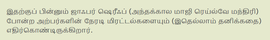 …இந்த ஜாஃபர் ஷெரிஃப் அயோக்கியருடன் என் தந்தையார் நேரடியாகப் பொருதிய காலமும், ஊழல்களுக்கெதிராகப் போராடியதும் நடந்தது என்பது வேறுவிஷயம்.