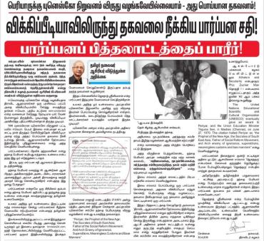 திராவிடப் பேடித்தனத்துக்கும் புளுகுணி மாங்கொட்டைத் தனத்துக்கும் இது இன்னுமொரு சான்றுதான்!