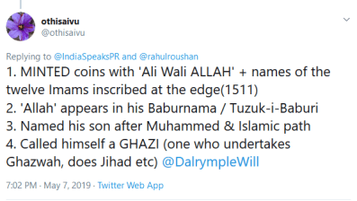 As usual, with his overflowing love and affection for Mughals, this time it is the turn of Holy Babur to receive accolades; therefore, the gent had posted a scholarly tweet.