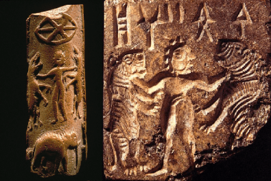 மேலிருப்பவர்கள் காப்பாள்கள், பெண்டிர்; ஒரு விஷயம் என்னவென்றால், நம் சங்க இலக்கியங்களில் வீரப்பெண்டிர் முறத்தால் அடித்துப் புலிகளை விரட்டுவதற்கு மிகமிக முன்னரே, ஸிந்து-ஸரஸ்வதி நாகரிகப் பெண்கள், வெறும் கைகளாலேயே ஒரே சமயத்தில் இரண்டு புலிகளின் கழுத்துகளை நெரித்திருக்கின்றனர் என்பது இதனால் வெள்ளிடை மலை! ;-) (பார்க்க: புலியை முறத்தால் அடித்து விரட்டுவது எப்படி – ஒரு சமையல் குறிப்பு 26/01/2016)