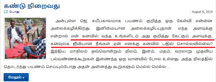 ஆ! சொல்ல மறந்துவிட்டேனே! ஒரு புதிய சேவையைத் தொடங்கியிருக்கிறேன். அதாவது உங்கள் கனவிலும் பிரத்யேகமாக வந்து அருள்வாக்குச் சொல்வதுதான் அது.