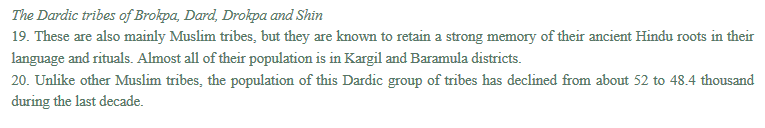 6. ஆனால் இவர்கள் எண்ணிக்கையில் குறைவாக இருந்தாலும் இவர்களில் சிலபலர் ‘ஆரியர்கள்’ எனவும் தங்களை அழைத்துக்கொள்கிறார்கள். இவர்களின் மிகப்பெரும்பான்மையினர் ஷியா முஸ்லீம்களாக இருந்தாலும், தங்கள் கடைசிப்பெயரை ‘ஆர்யன்’ என வைத்துக்கொள்கிறார்கள். இப்பகுதியை ‘ஆர்யன் பள்ளத்தாக்கு’ என அழைக்கிறார்கள். சுற்றுலா பயணிகளுக்கும் டிக்மார்க் டூரிஸ்ட்களுக்கும் இந்த அபூர்வ விஷயங்கள் வெல்லமாதலால் நன்றாகப் பரப்புரை செய்யப்படும் விஷயம் இது.