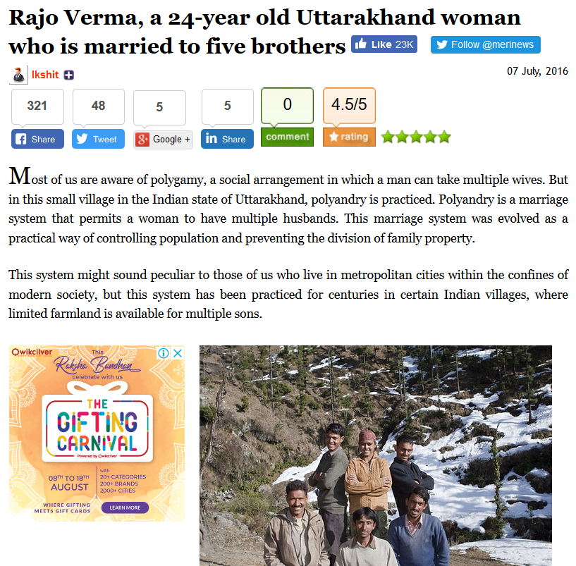 அ. படங்கள் கீழ்கண்ட தளத்தில் இருந்து எடுக்கப்பட்டவை: http://www.merinews.com/article/rajo-verma-a-24-year-old-uttarakhand-woman-who-is-married-to-five-brothers/15917713.shtml