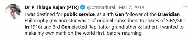 இவ்வளவு எழுதியிருக்க வேண்டாம்; திராவிட பிடிஆர்-மதுரை சிங்கம் அவர்கள், திமுக எனும் திராவிடக் கட்சியில் உயர் திராவிட அந்தஸ்தில் இருப்பவர், திமுக திராவிட தமிழக அரசில் முக்கியமான திராவிடப் பொறுப்புகளைத் திராவிடத் தனமாக வகிப்பவர் என்று மட்டும் சொல்லியிருக்கலாம்.