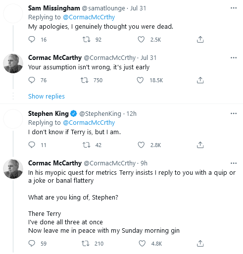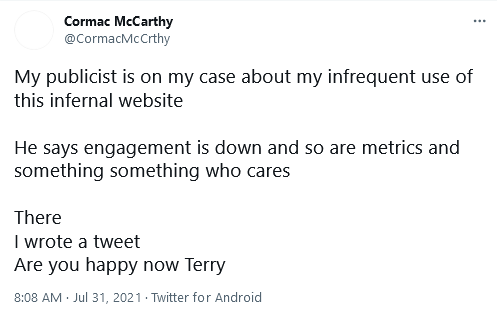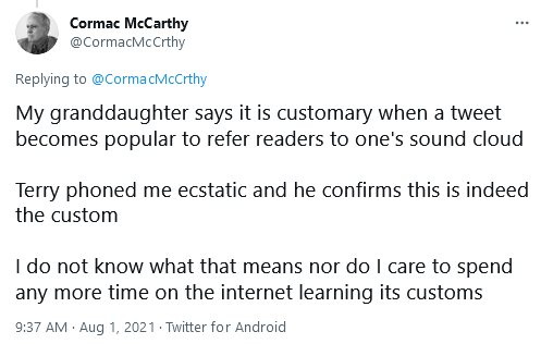 …One of my dear favorites, Cormac McCarthy tweeteth: