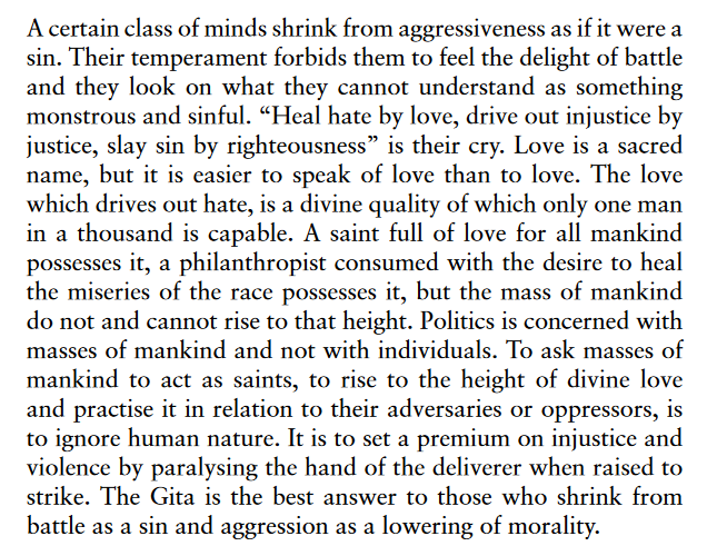 ஸ்ரீ அரோபிந்தோ அவர்களின் மேற்கோட்களைக் கொடுத்துக்கொண்டே செல்லலாம்…  ‘கீதைக் கட்டுரைகள்’ தொகையிலிருந்து நிறைய எடுத்துக்காட்டுகளைக் கொடுக்கலாம்.