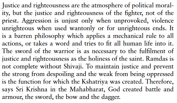 2) இந்தியா ஷத்ரிய வீரத்தால் சுதந்திரம் பெற்றிருக்கவேண்டும்