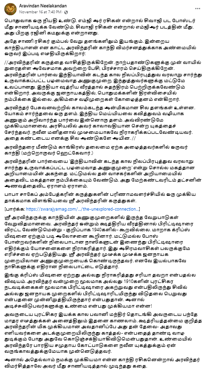 அதற்கு அரவிந்தன் நீலகண்டனின் மறுமொழி, மிகச் சரியாக வந்திருக்கிறது.