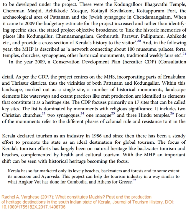 However – the Kerala Govt has a massive tourist circuit (‘Muziris Heritage Project’ MHP – with an area of some 150 km2) built around that, most of which has nothing to do with Archaeology – but have only ‘sight seeing’ or touristy value.