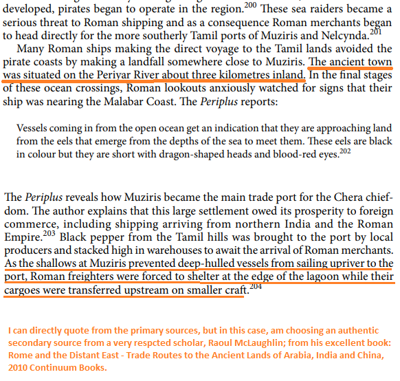 Again ‘Muziris’ was inland, up the River, about 20 Stadia FROM THE SEA. Which is ~3 miles/ 4 kms. Periplus mentions it, Pliny does.