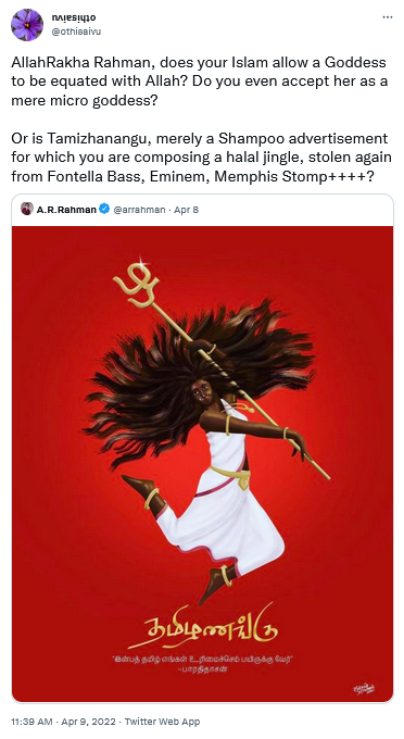 …அதேசமயம், இந்த ழமிழணங்கு வெள்ளுடை உடுத்தி + கறுப்பு நிறத்தில் தலைவிரிகோலமாக இருப்பதால்… அதற்கு எதிராக இன்னொரு கும்பல் கிளம்புகிறது…