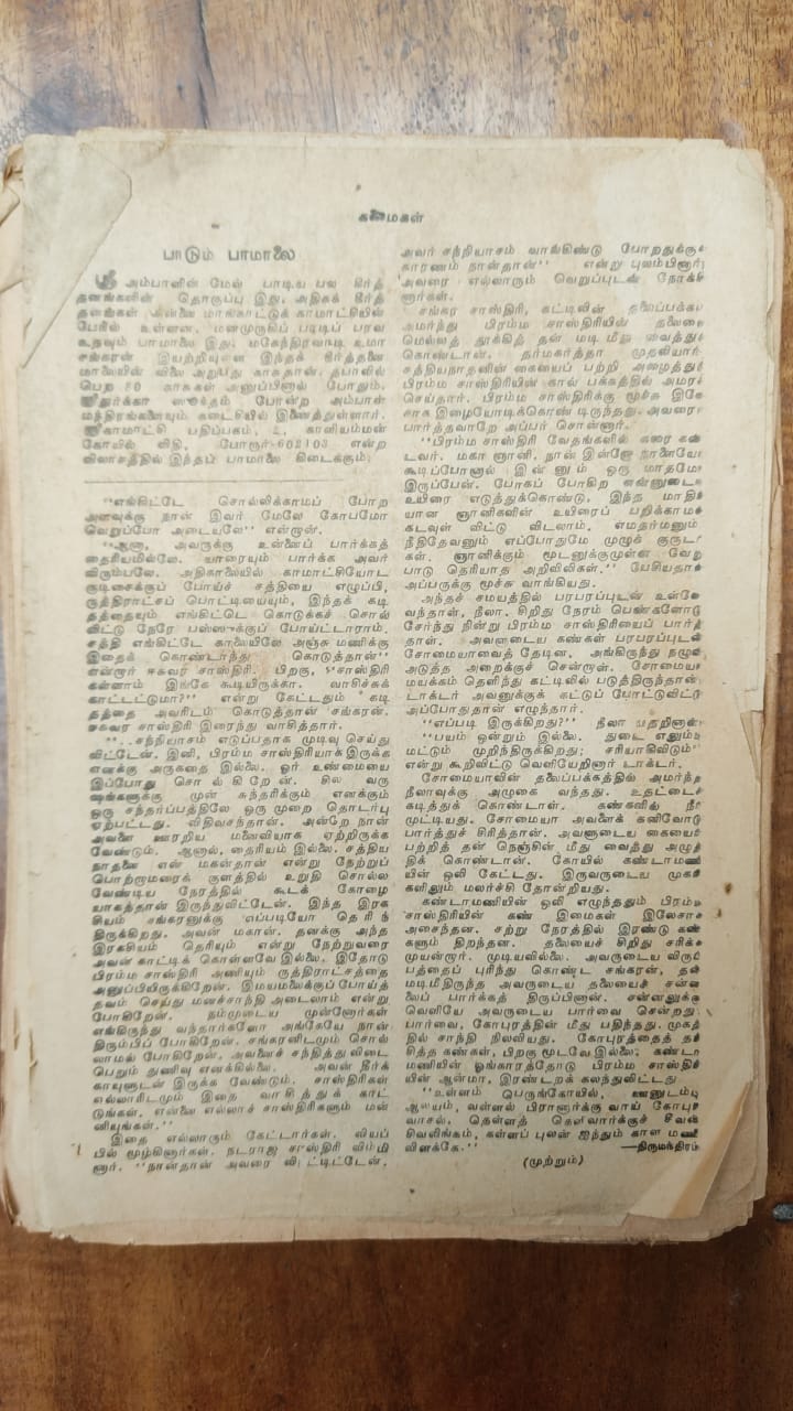 இதனை ஆர்வத்துடன் நான் படித்ததைக் கவனித்த முதலாளி நாடார் அவர்கள், மிகுந்த தயாள குணத்துடன் ‘வேண்டுமென்றால் அடுத்த இதழ் வந்தவுடன், பழைய இதழின் தொடர்கதைப் பகுதியைப் பிய்த்து எடுத்துக்கொள்’ என்று சொன்னவுடன், எனக்குப் பூலோகமே வைகுந்தமாகி விட்டது. (என்னால் மாதாமாதம் போகமுடியாமல் போனாலும் எனக்காகக் கலைமகள் பின்னிதழ்களைப் பாதுகாத்து வைத்திருந்தார் அவர்)