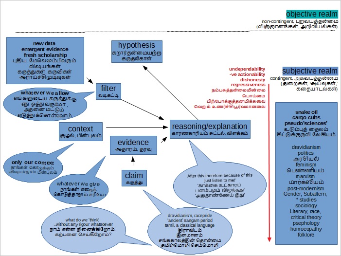 OTOH, I appreciate and commiserate with our acutely ‘Tamil’ predicament – that we have never had any native ‘Tamil’ Scientific traditions at all – whether it is technology or medicine or… math or chemistry or… even poetics or aesthetics… So, it is obvious that it is difficult for us to pursue a logical, rational, honest approach (bereft of emotions and vacuous chest thumping) towards anything.