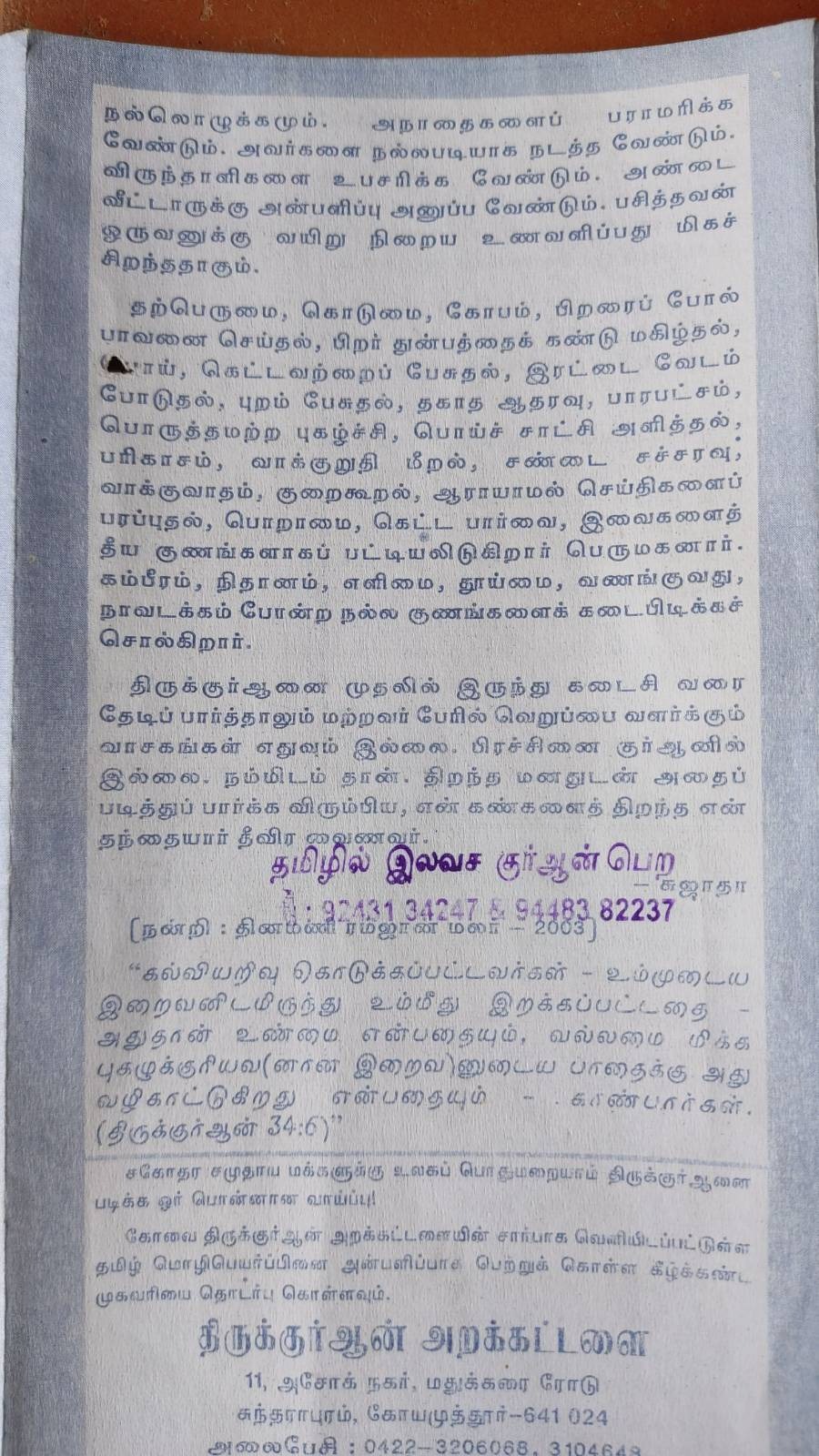 • ஐயா, சுஜாதா அவர்கள் தினமணியில் (ரம்ஜான் மலர், 2003) எழுதிய கட்டுரைதான் அந்தத் துண்டுப் பிரசுரமாக வெளியிடப் பட்டிருக்கிறதுபோல – அந்தப் பிரசுரம் அப்படித்தான் சொல்கிறது. (ஆனால் இதனை நான் சரிபார்க்கவில்லை)