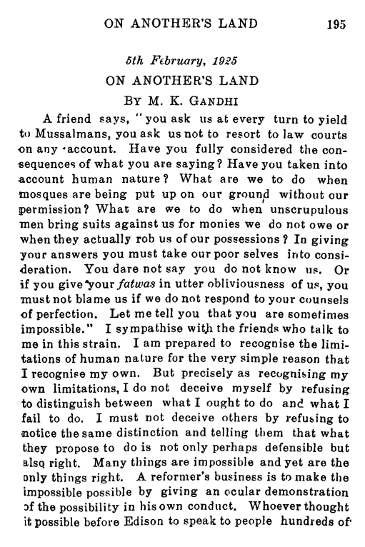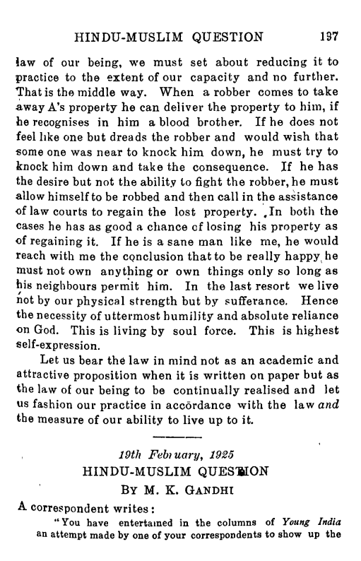 Young India collection, 1924-1926 (S. GANESAN, PUBLISHER, TRIPLICANE, MADRAS. S. E. 1927) by Mahatma Gandhi, pp 195-7