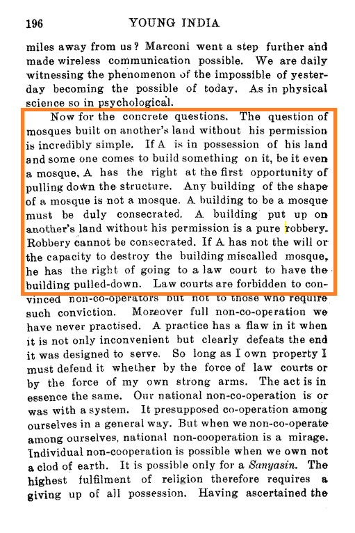 மோஹன்தாஸ் கரம்சந்த் ‘பாபுஜி’ காந்தி, ஆக்கிரமிப்பு அடாவடி மஸூதிகள் & மீட்சி/திருப்பி எடுத்துக்கொள்ளப்படல் – சில குறிப்புகள்