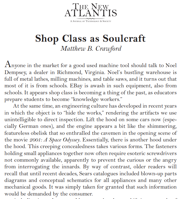 matthew b. crawford: shop class as soulcraft