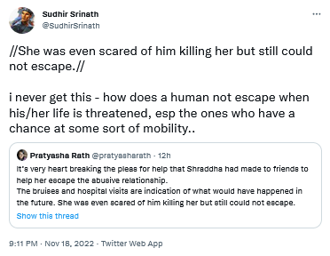Chanced upon this tweet-response of Sri Sudhir Srinath – the context is the slaughter & dismemberment of the unfortunate kuf’r girl, Shraddha by an Islamic psychopath – please refer to the previous post, if you want more background.