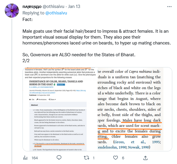 Thanks for the info about goats and their beards. Nature doesn’t make mistakes. Or may be sometimes it does… How else would these dravidiots come into existence and rule us for so long ?