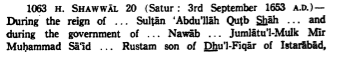 தெலுங்குக் குறிப்புகள் (இவை பாரசீக எழுத்துகளின் கீழ் இருக்கின்றன) சொல்வதன் சாராம்சம்: